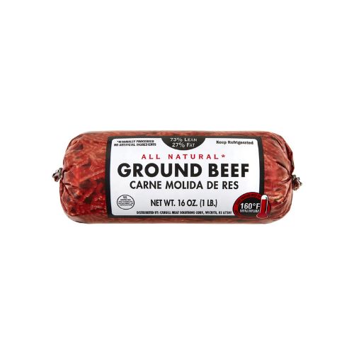 - 73% Lean / 27% Fat Ground Beef, 1 lb Roll, Fresh, All Natural*