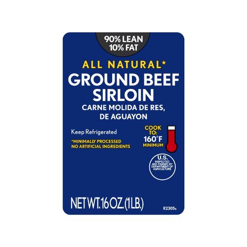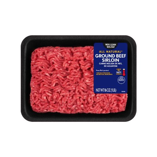 - 90% Lean / 10% Fat Ground Beef Sirloin, 1 lb Tray, Fresh, All Natural*