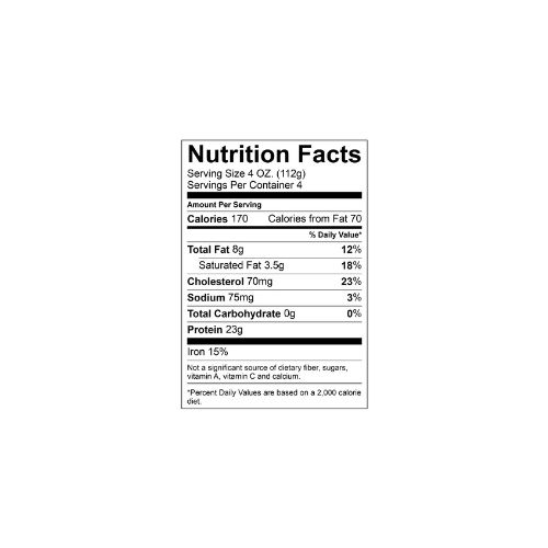 • Excellent source of protein, vitamin B6, vitamin B12, zinc, niacin, selenium and a good source of phosphorous, riboflavin and iron