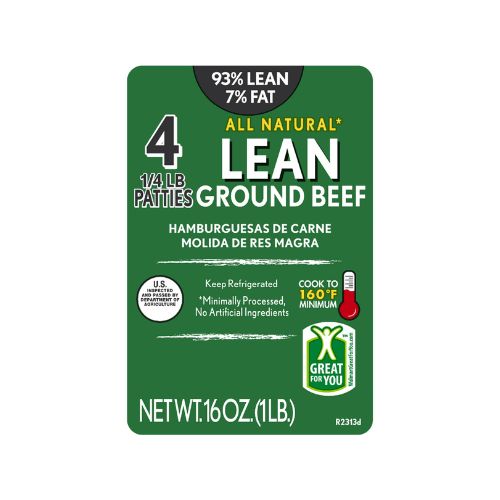 - 93% Lean / 7% Fat Lean Ground Beef Patties, 4 Count, 1 lb Tray, Fresh, All Natural*