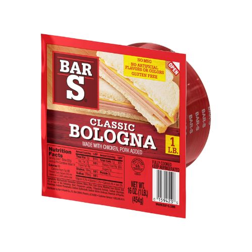 - Bar-S Classic Bologna Sliced Deli-Style Lunch Meat, 14 Slices per Package, 1 lb Pack: Made with chicken and pork Gluten Free No MSG No artificial colors No artificial flavors