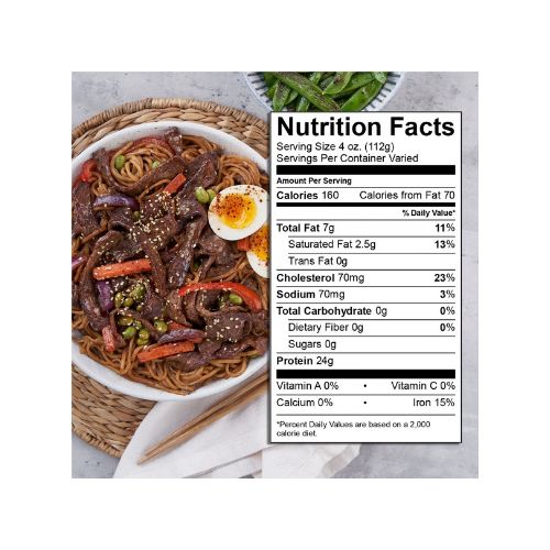 Sliced stir fry beef is perfect for what else – stir fries – but it’s also great for so much more! This fresh high-quality bottom round is expertly thin sliced to 1/8” for convenience from USDA Certified Choice Angus beef for marbling, tenderness, and flavor. It is full of rich flavor and perfect for delicious recipes like rice and noodle dishes, sandwiches, protein bowls, and more. Plus, it’s packed with 24g of protein and is a good source of iron per serving so you can feel great about serving it. Shop with confidence for high-quality beef with no compromises online or in-stores.