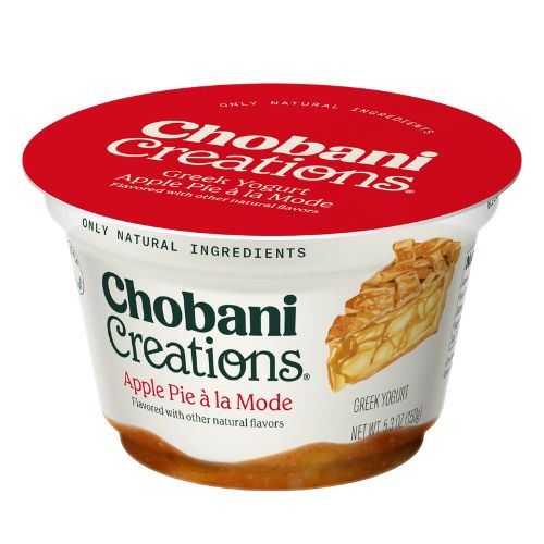 Chobani Creations?? is lick-the-lid, scrape-the-sides, and say “Mmmmm“ delicious. Dessert-inspired flavors are crafted with rich, creamy Whole Milk Plain Greek Yogurt and natural flavors, or real fruit. Try Chobani Creations?? Apple Pie ?? la Mode. Dessert-inspired layers of rich, creamy Vanilla Whole Milk Blended Greek Yogurt and real apples. Crafted with only natural ingredients.