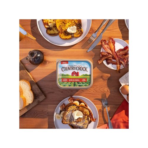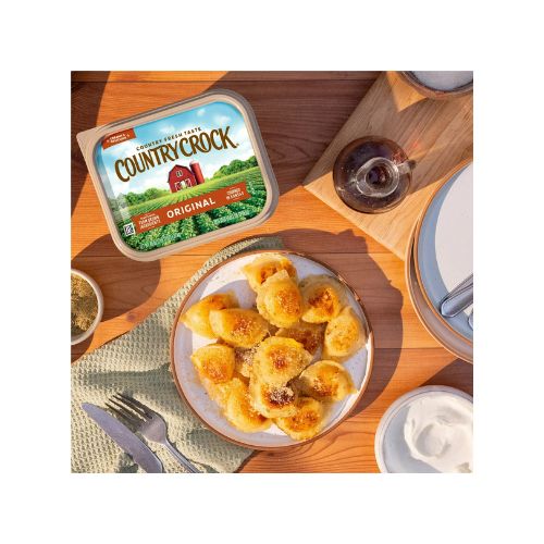 Bring authentic, country-fresh flavor to the table with Country Crock Original Buttery Spread, 45 oz Tub (Refrigerated) . This buttery spread is rich, creamy, and delicious. Slow-churned in Kansas and carefully crafted with farm-grown ingredients, you can always count on Country Crock to be free of any artificial flavors and preservatives. There’s a reason Country Crock has been a trusted favorite at the center of family tables for generations! Ready to use right out of the fridge, Country Crock Original can be spread on top of your favorite breads and pastries for a deliciously decadent buttery treat. Use it as a secret ingredient to add depth of flavor and richness to your cooking and baking favorites from appetizers to main dishes, desserts, and more. Country Crock Original is free of gluten, hydrogenated oils, dairy, and lactose, has 0g cholesterol and trans fat per 1 tbsp serving, and has 75% less saturated fat than a 1 tbps serving of traditional dairy butter. Brought to you by Country Crock, a brand committed to welcoming everyone to the table. We treat everyone like family and every place like home. Our products are sustainably farmed and responsibly sourced. When you can spread, top, cook and bake just about anything with this buttery spread, the options are endless with Country Crock!