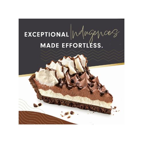 EDWARDS DESSERTS – Exceptional indulgences made effortless! No matter how you slice our decadent, velvety layers and fresh-from-the-oven cookie crumb crust, our frozen pies are meticulously whipped, sprinkled, and drizzled to extravagant perfection. The Edwards Chocolate Crème Pie is a chocolate lover’s dream with luscious layers of chocolate and vanilla crème filling, then topped with chocolate drizzle, chocolate chips, and whipped crème rosettes. Simply thaw and serve to see how this crème pie will be the talk of the dessert table for every occasion and holiday.