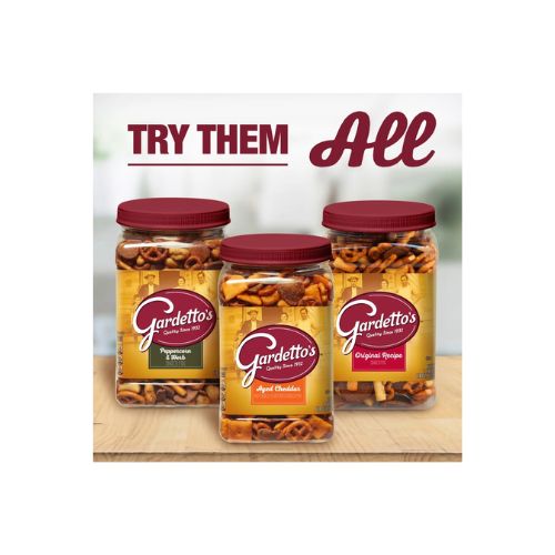 • THE OG CRUNCH: Bursting with rich flavor, this savory snack mix is made with crunchy breadsticks, salted pretzels, roasted rye chips, and special seasoning; It’s Gardetto’s original, signature snack
