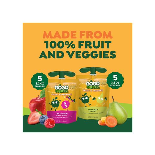 • INCLUDES 10 POUCHES – Variety pack includes 5 Apple Pear Carrot and 5 Apple Carrot Mixed Berry pouches