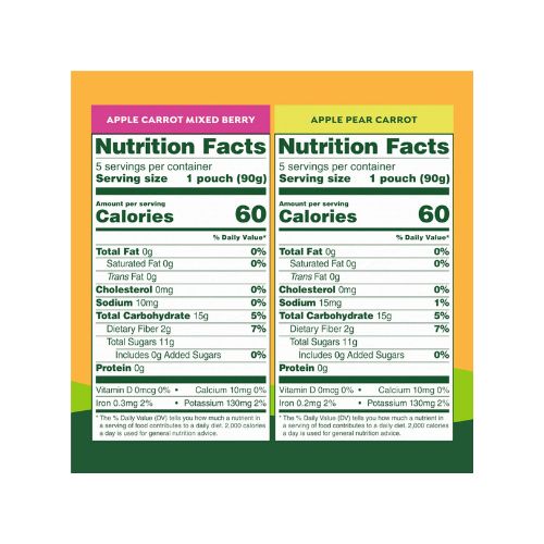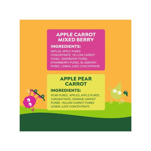 • MADE WITH REAL FRUIT & VEGGIES – Apple Pear Carrot and Apple Carrot Mixed Berry flavors made from apples, pears, carrots, and berries with no high fructose corn syrup, added sugar, or artificial ingredients