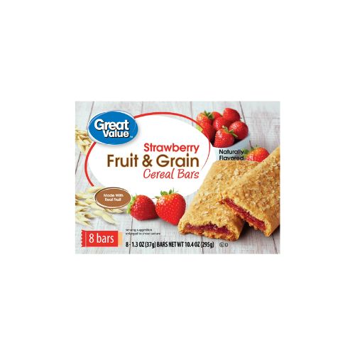 - Great Value Fruit & Grain Cereal Bars, Strawberry, 1.3 oz, 8 Count