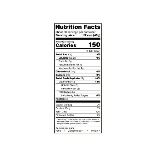 Great Value Old Fashioned Oats are 100 percent whole-grain rolled oats that are quick to cook on your stovetop or in the microwave in just a few minutes. This cereal is a heart-healthy choice that has two grams of soluble, belly-filling fiber per serving and is low in saturated fat and cholesterol. Reinvent your oatmeal each morning with different toppings like kiwi, banana, chia seeds, or pecans. You can also tap into your creative side by adding oats to granola, cookies, bread, and even smoothies. With no artificial flavors or preservatives, it’s easy to add this tasty and healthy option to your cooking and baking in the kitchen. No matter how you use them, Great Value Old Fashioned Oats are a tasty way to start your day off right.