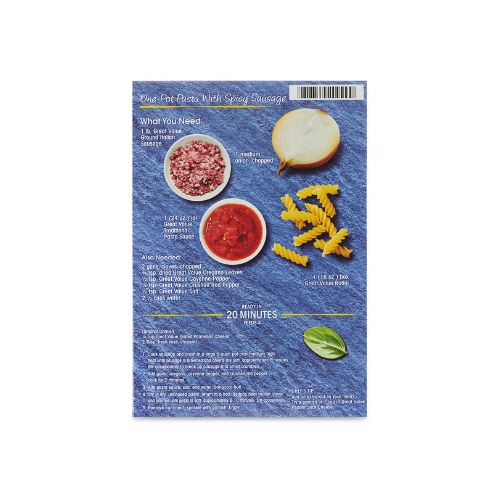 Great Value Rotini, 16 oz Box, Great for your family’s favorite pasta dinner, Just add to boiling hot water and add your favorite ingredients, Try with tomato basil sauce, covered in cheese, or as a chilled salad, About 8 servings per box, Enriched macaroni product, Contains Wheat, Shelf Stable-Regular