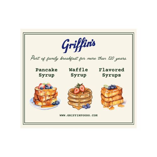 Griffin Original 64oz Bottle Pancake and Waffle Syrup adds the thick, rich and sweet delicious maple flavor your Pancakes, Waffles, French Toast and much more. Since 1908, Griffin Syrups have a long-standing tradition of high-quality syrups which is sure to be a family crowd pleaser at any occasion or as an ingredient to a favorite recipe. Griffin 64 fl oz Original Syrup is low in fat, sodium and is made with only the highest quality ingredients. Its rich, thick and sweet flavor will remind you of times past and a great start to new family traditions.
