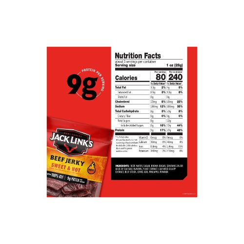 Jack Link’s Beef Jerky, Sweet & Hot, 100% Beef, 9g of Protein per Serving, 2.85 oz Bag