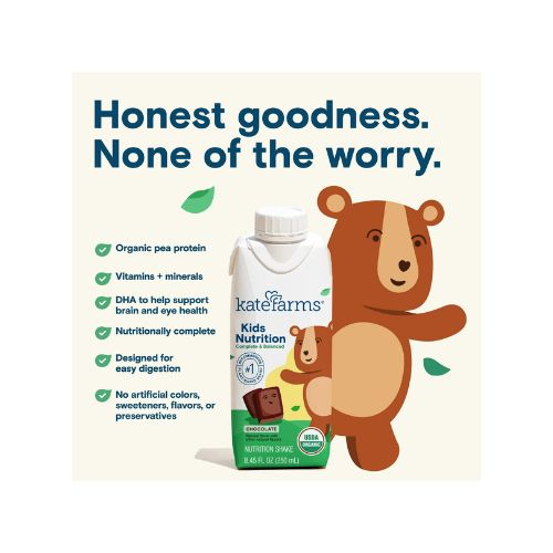Kate Farms Kids Nutrition is a sole source nutrition shake designed to help support healthy growth and development for your little one. Kids Nutrition is a great option to support picky eaters who need additional calories to meet milestones, and is made with DHA to help support brain and eye health in growing kids. Like all Kate Farms products, Kids Nutrition is USDA Organic, plant-based, delicious, and always made with love. Perfect for on-the-go, between meals, and great as the base to your child’s favorite smoothie.