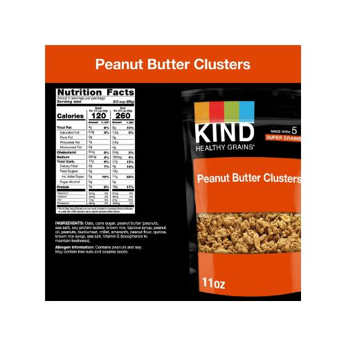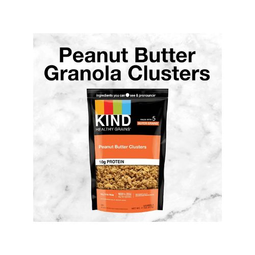 - One 11 oz bag of KIND Healthy Grains Granola, Healthy Snack, Peanut Butter Granola Clusters, snack mix