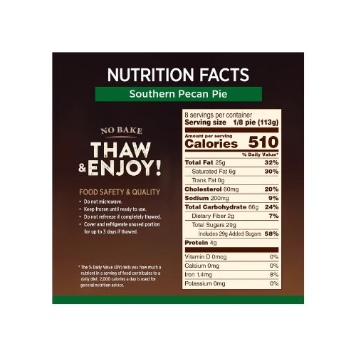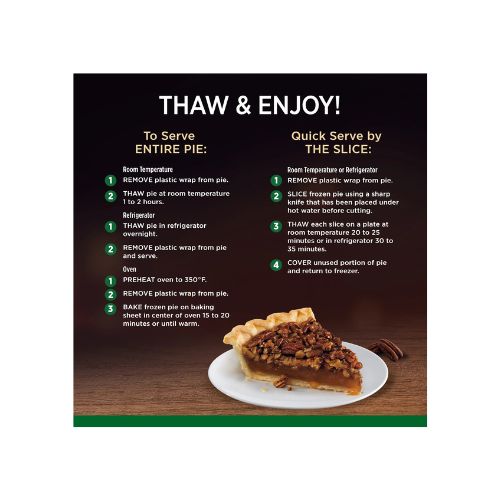Indulge in the down-home flavors of a sweet Southern favorite with Marie Callender’s Southern Pecan Pie. Enjoy a frozen pie with deliciously sweet and sticky filling made with golden, crisp pecans inside an extra-flaky made-from-scratch pastry crust. This Marie Callender’s thaw and serve pecan dessert looks and tastes as great as homemade and is ready to eat after thawing at room temperature for 1 to 2 hours. Serve this beautiful no-bake, frozen pecan pie after your favorite meal for an easy, satisfying dessert. With 8 servings per pie, it’s big enough for the whole family to share. Enjoy sweet, rich and comforting flavors in a Marie Callender’s frozen pie for the perfect dessert for every occasion.