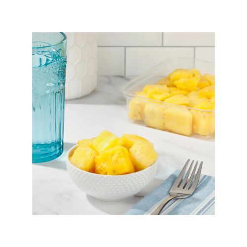 Experience a burst of tropical flavors with these Marketside Pineapple Chunks. The pre-cut chunks of ripe pineapple are juicy and sweet to taste and are packed in its own juice. Carry them with you and eat them straight out of the tray any time you want, at home or on-the-go. You can also use them to top desserts and ice creams, in a fruit salad or blend them with milk to make milkshakes. Add some fresh fruit to your daily menu today with these Marketside Pineapple Chunks. Marketside provides you and your family with high-quality fresh food that saves you time and money, many of which are cooked fresh or prepared in stores. Convenient solutions with value added in every Marketside item.