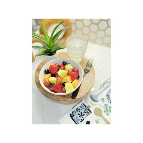 Enjoy a healthy snack with an assortment of popular fruits in this Marketside Fruit Blend. Colorful and delicious, this fruit bowl contains blueberries, strawberries, grapes, honeydew, and cantaloupe for a tasty treat. The fruit is packed in a secure plastic bowl with a lid, making it convenient and portable. Tender and sweet, these different fruits provide you with many essential nutrients you need every day, along with a medley of different flavors. The pre-cut fruits also make it a convenient option for snacking. Have an easy, healthy treat on hand with Marketside Trio Bowl. Marketside provides you and your family with high-quality fresh food that saves you time and money, many of which are cooked fresh or prepared in stores. Convenient solutions with value added in every Marketside item.