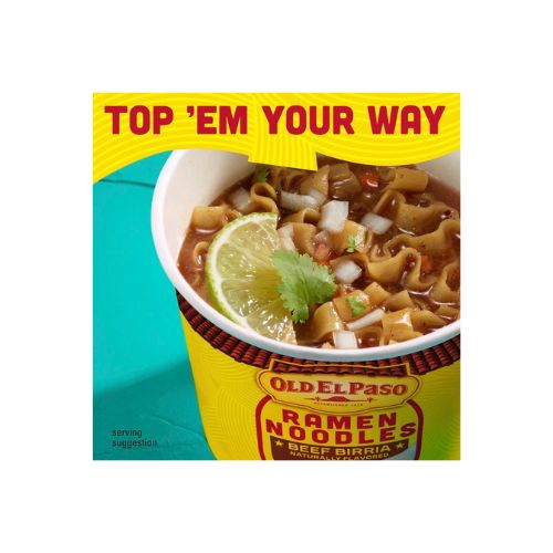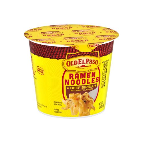 - CONTAINS: One 1.98 oz cup of Old El Paso Beef Birria Naturally Flavored Ramen Noodles; One serving per container