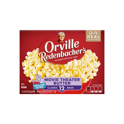 • One 12 count box of Orville Redenbacher’s Movie Theater Butter Microwave Popcorn, 3.29 oz bags