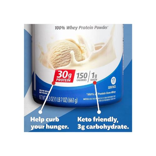 - Each serving contains 30g protein with all the essential amino acids, 150 Calories, and 1g Sugar.