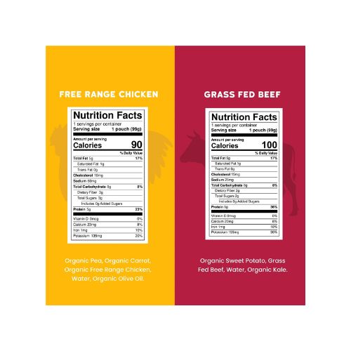 - FREE FROM: Our nutrient dense chicken and beef pouches are grain, rice and gluten free.