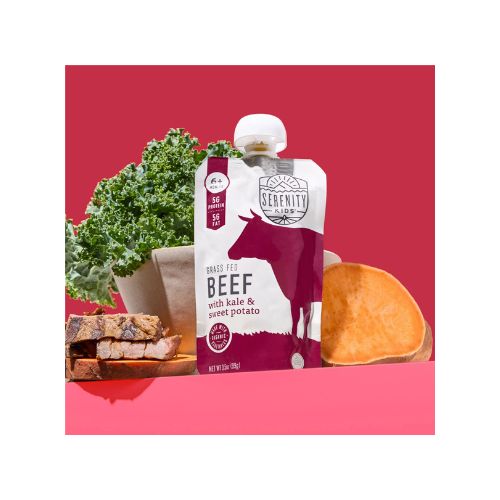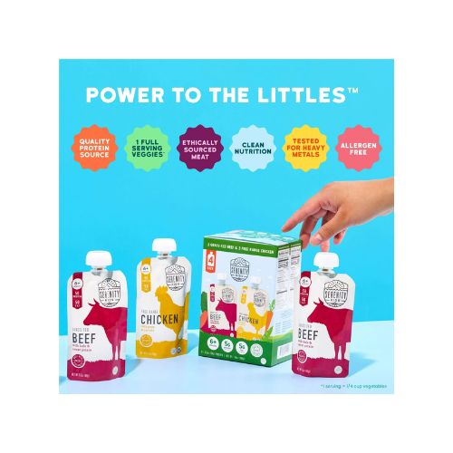 - MINDFULLY MADE: Serenity Kids beef and chicken stage 2 baby food pouches mimic breast milk’s macronutrients. Each pouch is packed with ethically sourced meats and organic veggies, free from artificial stuff.