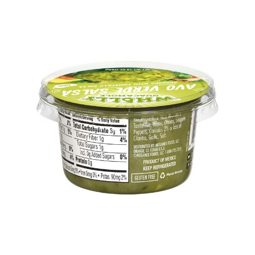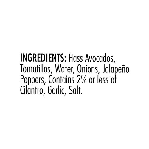 WHOLLY GUACAMOLE Avocado Verde Salsa Mild is made with tangy tomatillos, jalapeno peppers, garlic salt, cilantro, and chunky Hass avocados. This delicious dip is ready to go so you can enjoy the party whether it’s a large gathering or a party of one. Mild Avocado Verde Salsa is great to have on hand to add to your favorite omelet, soups, salads, or sandwiches for a convenient addition to your favorite meal. Gluten-free, Non-GMO, and has no preservatives added. An ideal flavor enhancer to keep on hand in your refrigerator that makes a great topping for snacks or entrees. Includes one, 10 oz plastic bowl of WHOLLY GUACAMOLE Avocado Verde Salsa Mild. All trademarks, logos and images are owned by Hormel Foods Corporation, its subsidiaries and affiliates. Copyright MegaMex Foods, LLC